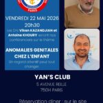 par Emmanuel BoyadjianMalgré les tragiques évènements de l’Artsakh et de l’Arménie, nous continuons notre série de conférences mensuelles du 3ème vendredi du mois. Ce sera donc le VENDREDI 20 OCTOBRE 2023 à 20h30 au Yan’s Club En l’occurrence, le sujet est assez approprié car nous… Lire la suite : Vendredi 20 Octobre 2023 – Chirurgie Plastique Nomade : de la case de santé aux conflits armés, trente années d’expérience (Dr P. Knipper) - Vendredi 15 Septembre 2023 – Aux origines de l’Arménie. Enquête sur la naissance d’un peuple (M. Yevadian)